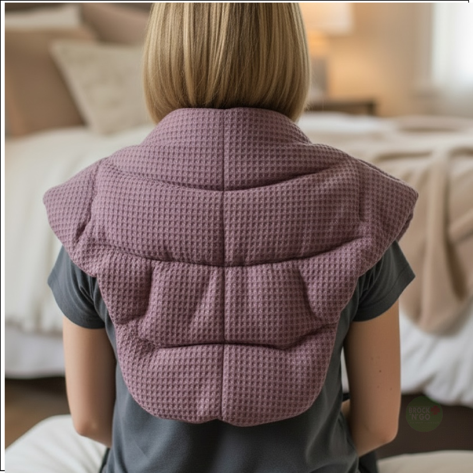 Dank seines ausgewogenen Gewichts von ca. 1700 g bleibt es ganz von selbst auf Schulter, Rücken oder Bauch liegen – ohne Klettverschluss, ohne Knöpfe, ohne Verrutschen. Du kannst dich frei bewegen, sogar damit herumlaufen, während das Kissen sanft wärmt und gleichzeitig deine Haltung unterstützt.