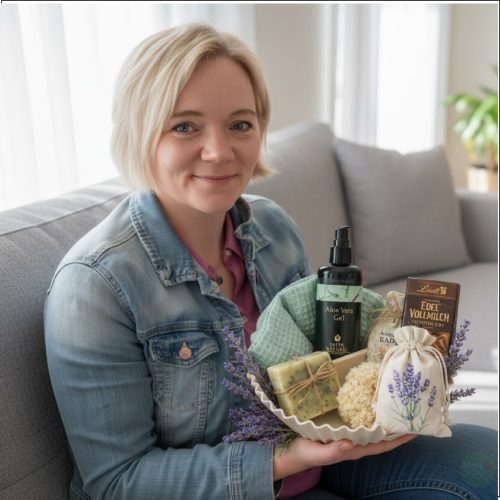 Liebevoll zusammengestellt findest du darin alles für eine kleine Selfcare-Pause – und danach bekommt der „Korb“ ein zweites Leben als Silikon-Backform für die Heißluftfritteuse.